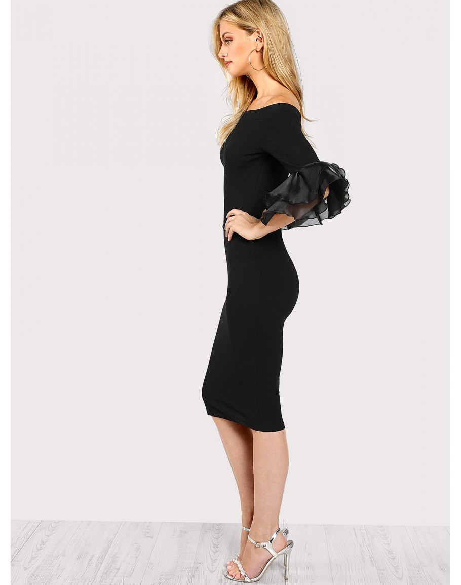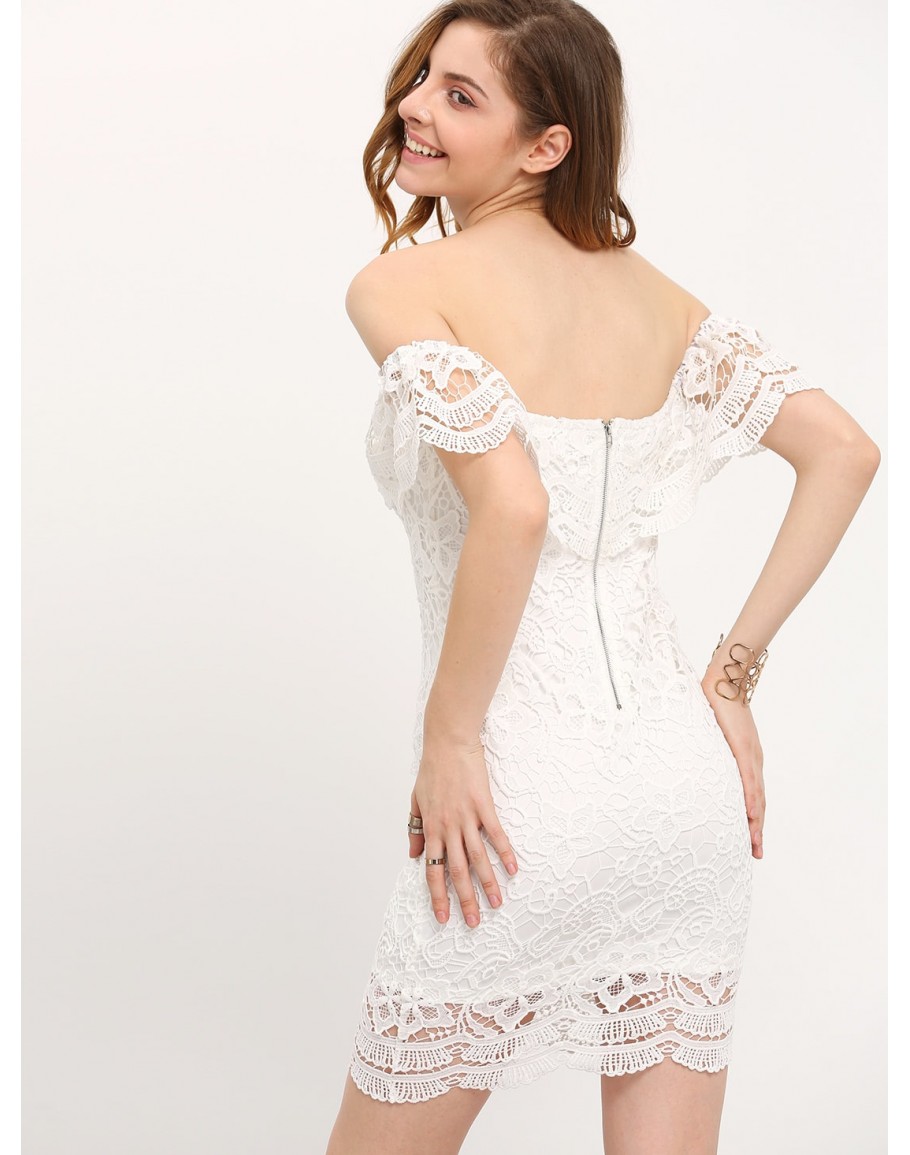 Straight Across Lace Ruffle Bodycon Dress