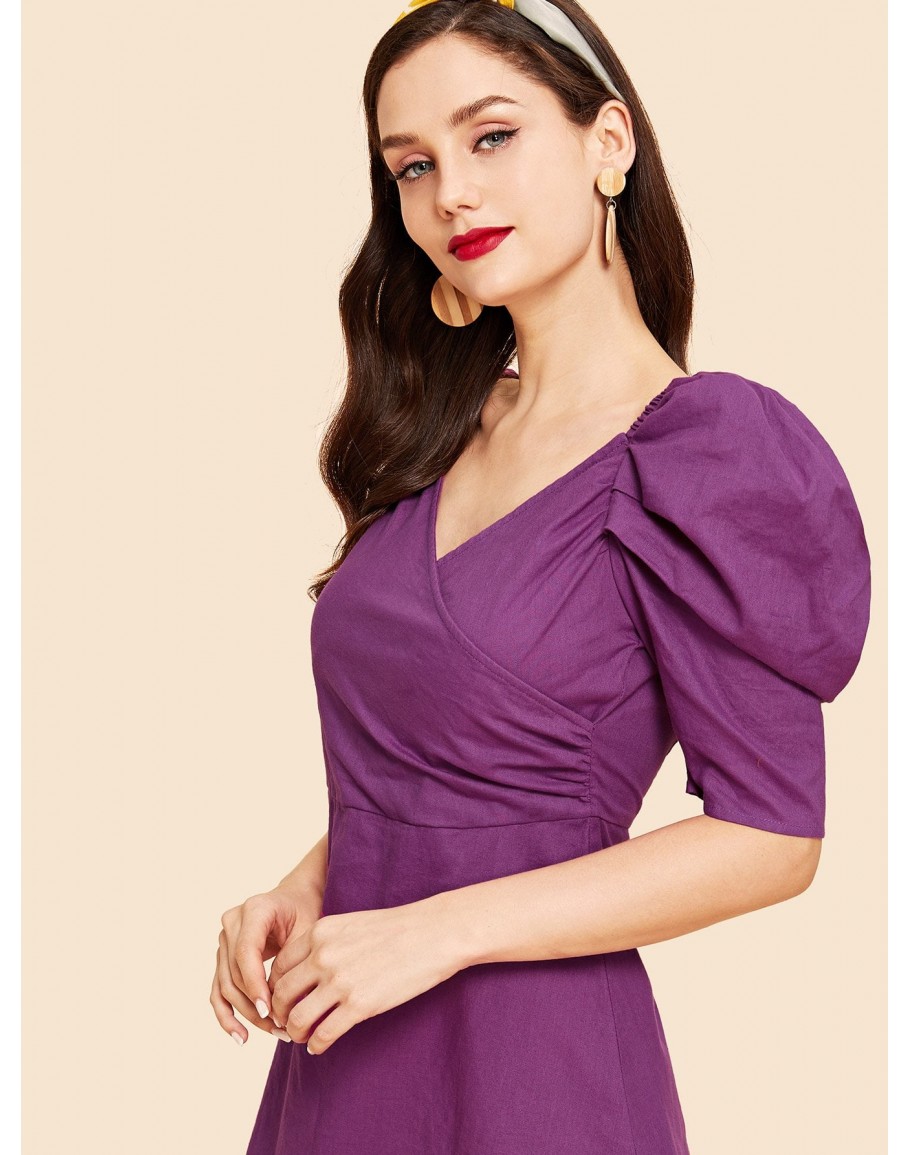 Puff Sleeve Zip Back Wrap Dress