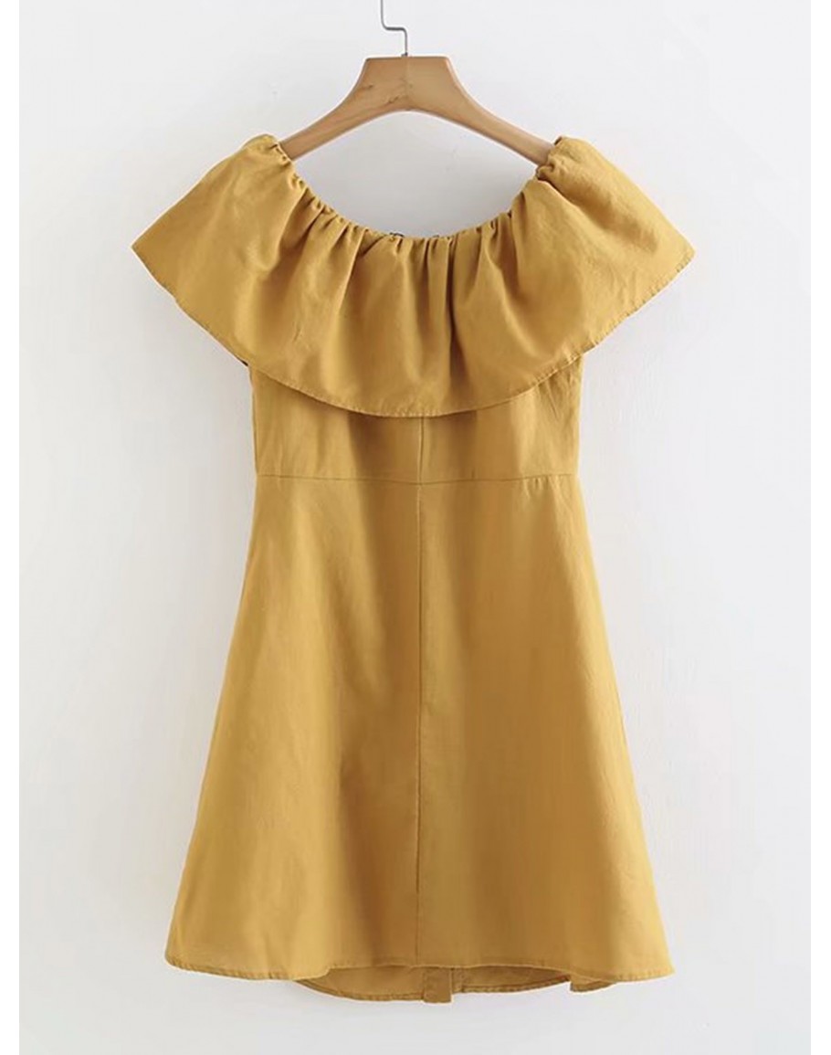 Ruffle Trim Button Through Dress