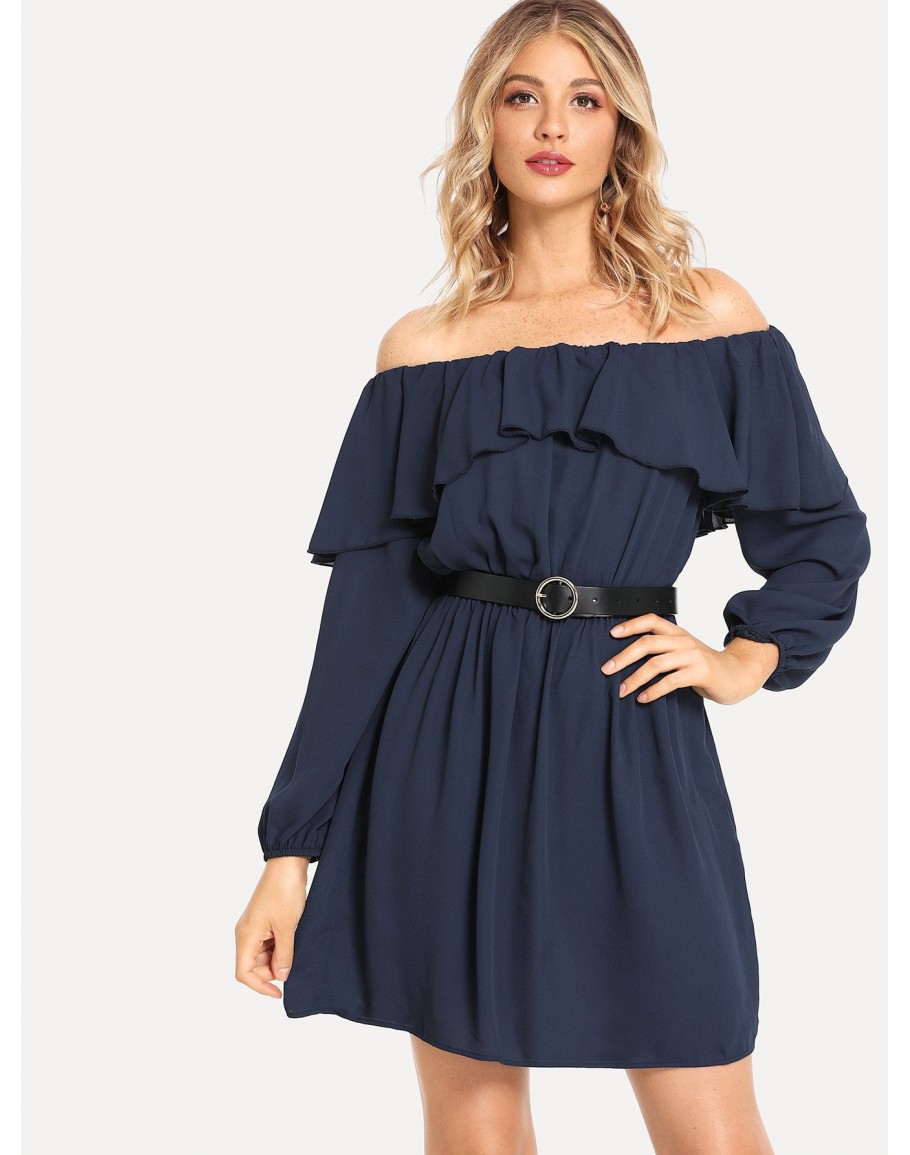 Off Shoulder Ruffle Belted Dress