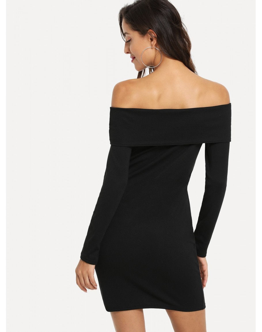 Off Shoulder Solid Dress