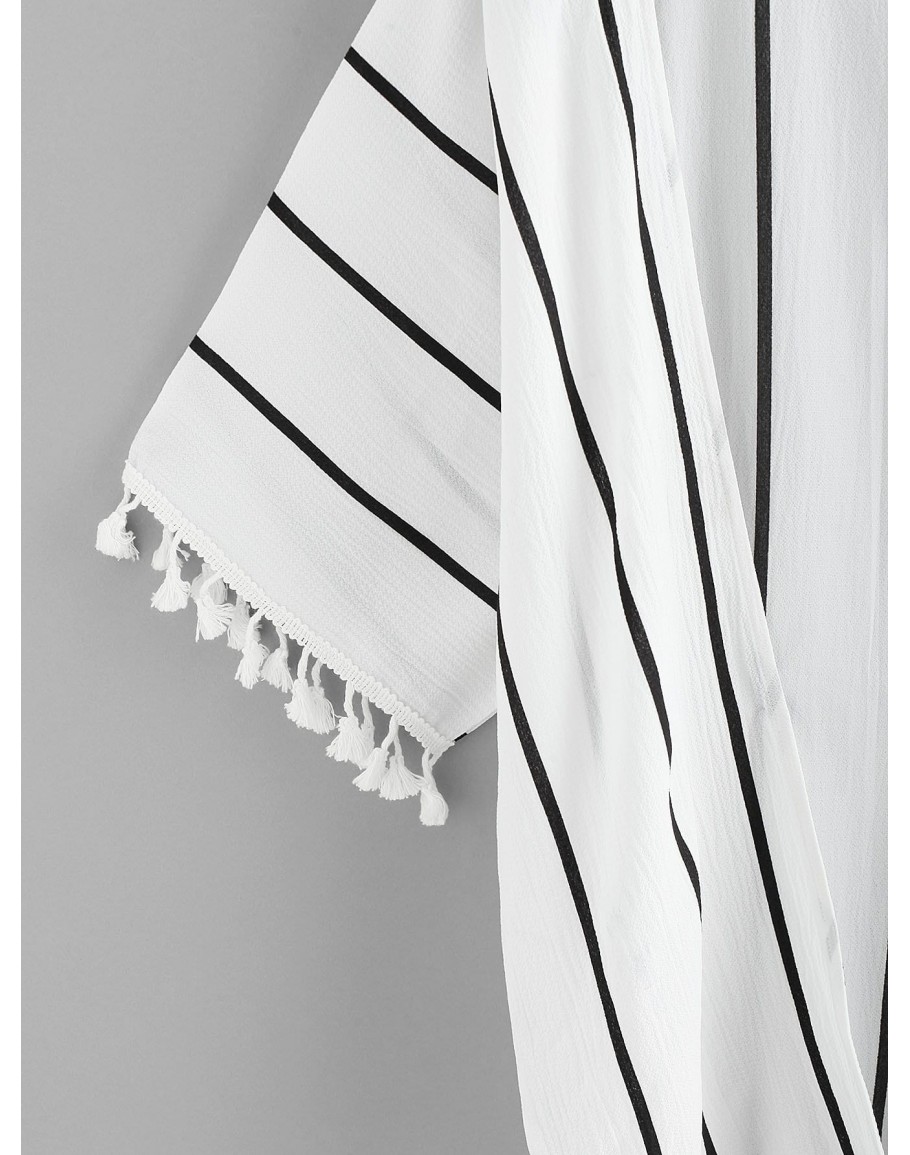 Tassel Trim Striped Kimono