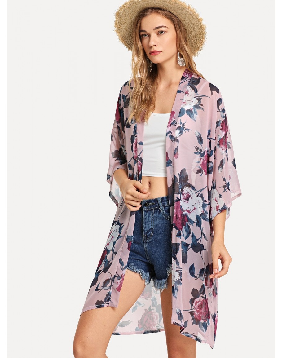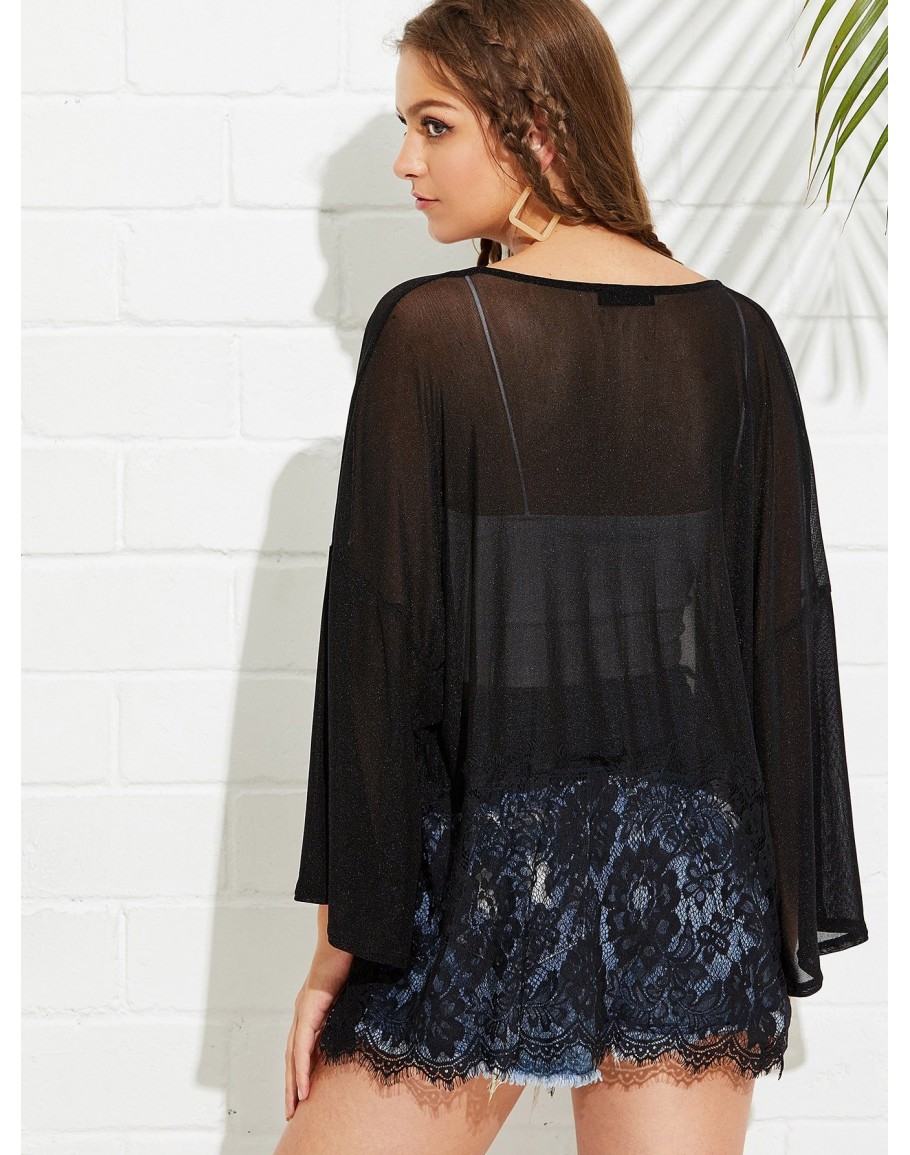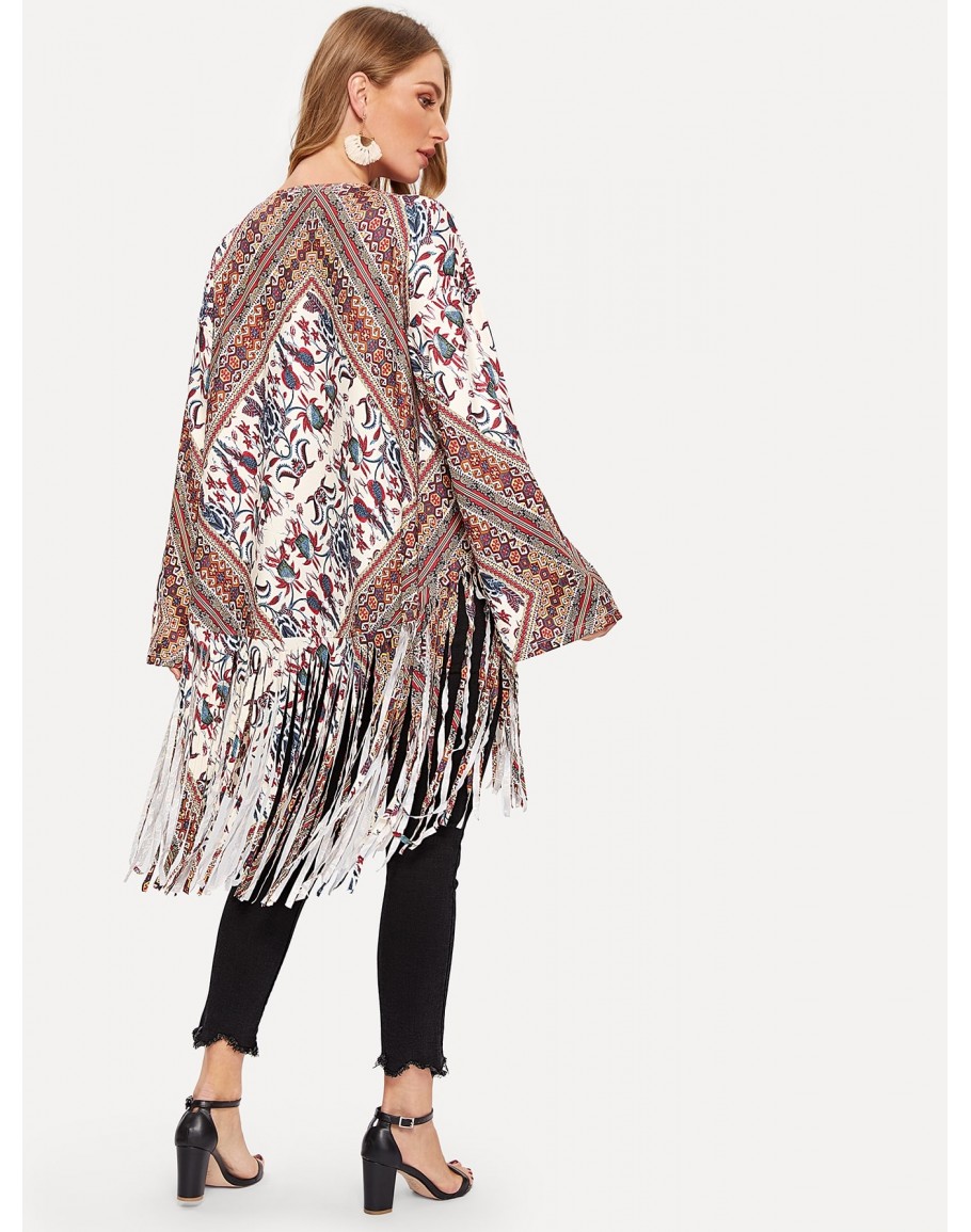 Lace Insert Tassel Trim Drawstring Waist Kimono