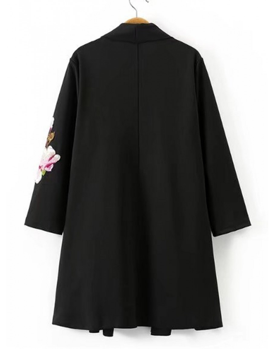 Shawl Collar Embroidered Flower Kimono