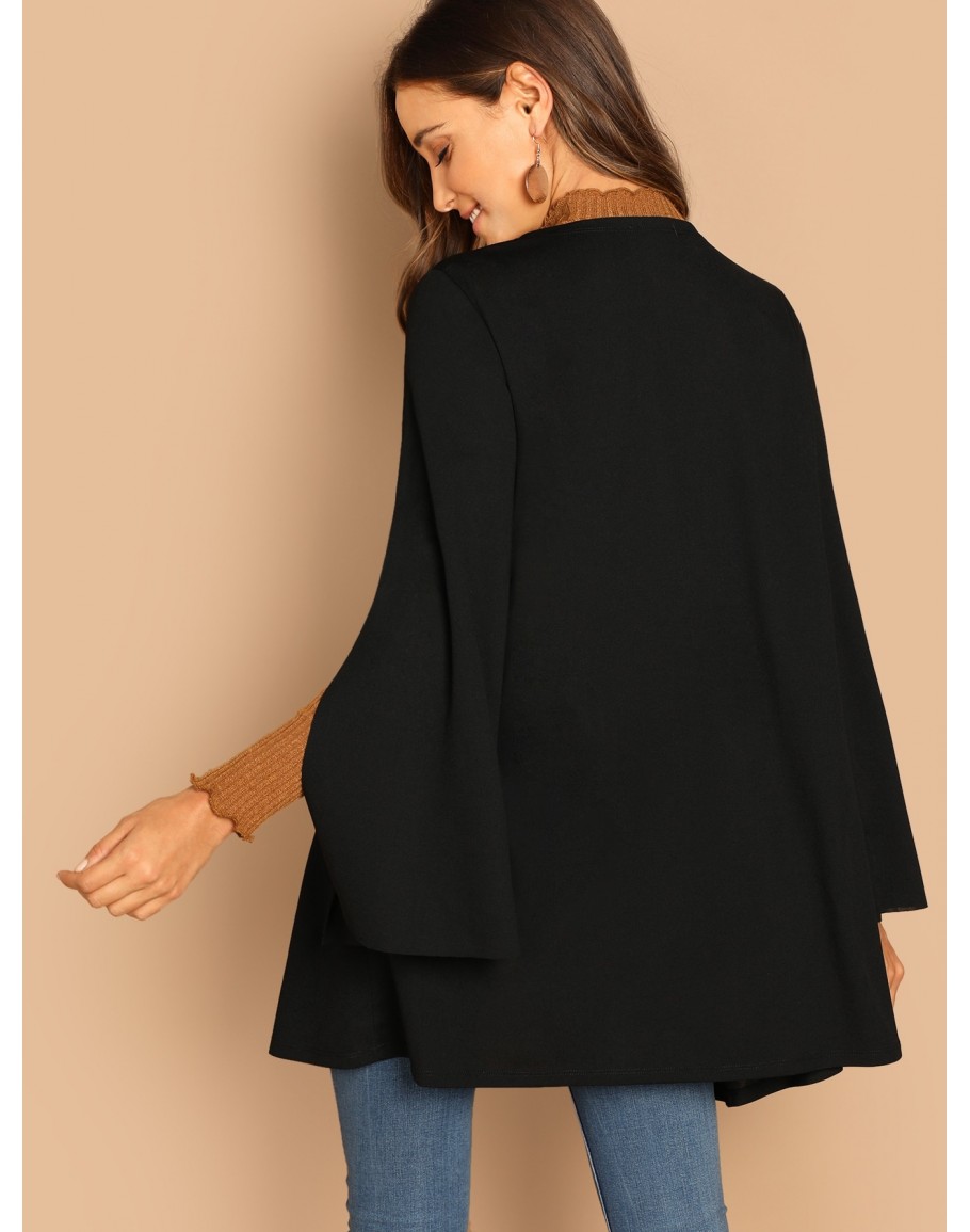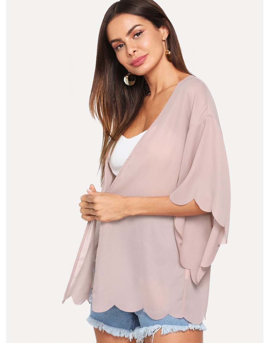 Solid Scallop Trim Kimono