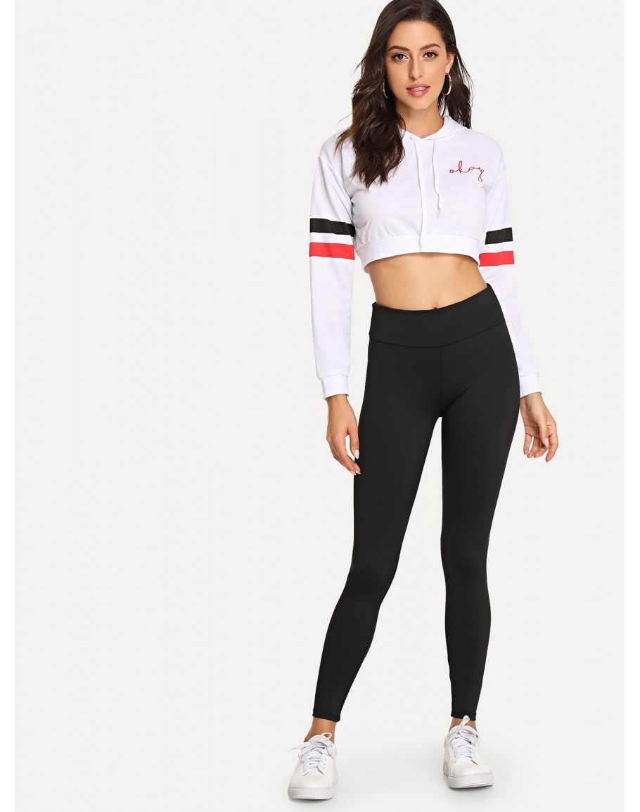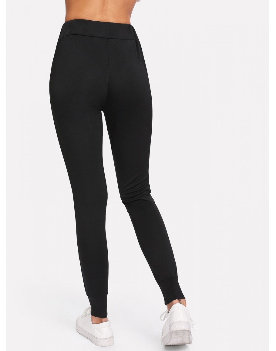 Rose Appliques Drawstring Skinny Pants