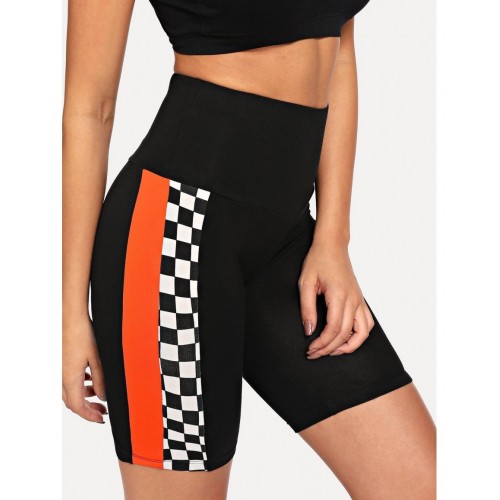 • Color Block Plaid Cycling Shorts