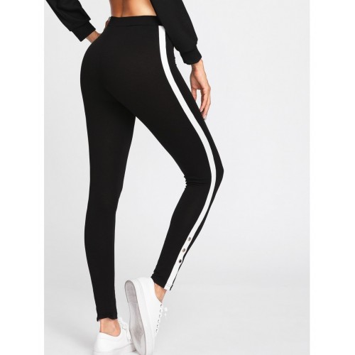 Grommet Detail Contrast Panel Leggings