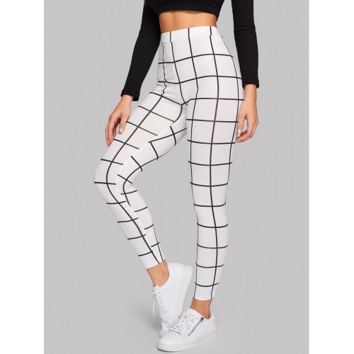 • High Waist Grid Skinny Leggings