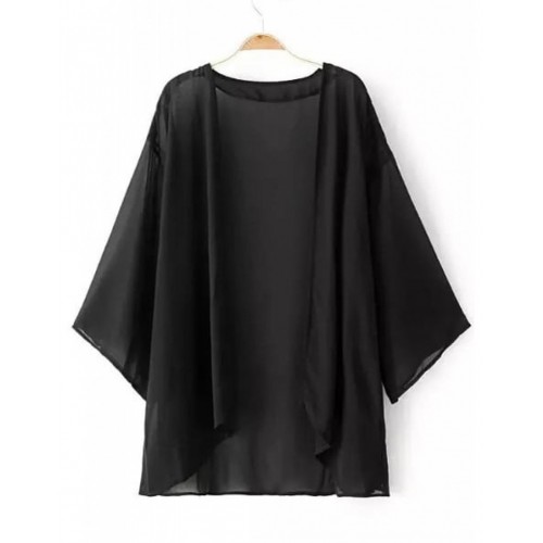 Black Elbow Sleeve Cardigan Kimono