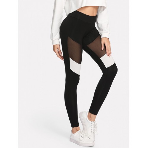 Two Tone Mesh Insert Leggings