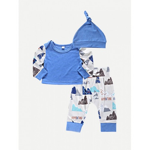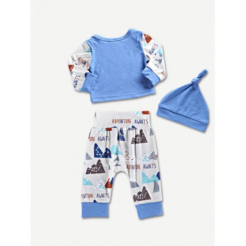 Baby Mountain Print Top & Bow Front Pants & Hat
