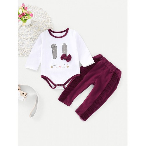 Baby Rabbit Pattern Jumpsuit & Frill Trim Pants