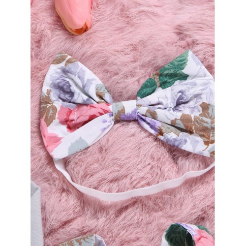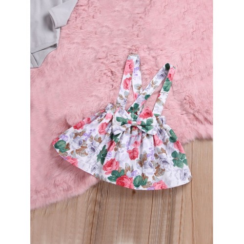 Baby Ruffle Trim Top & Floral Print Pinafore Skirt & Headband