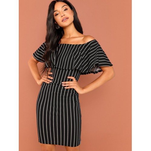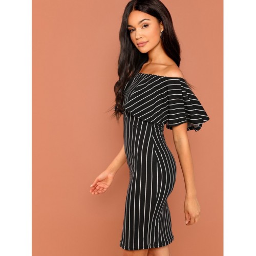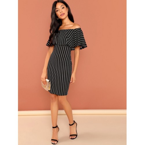 Foldover Front Off Shoulder Striped Dress